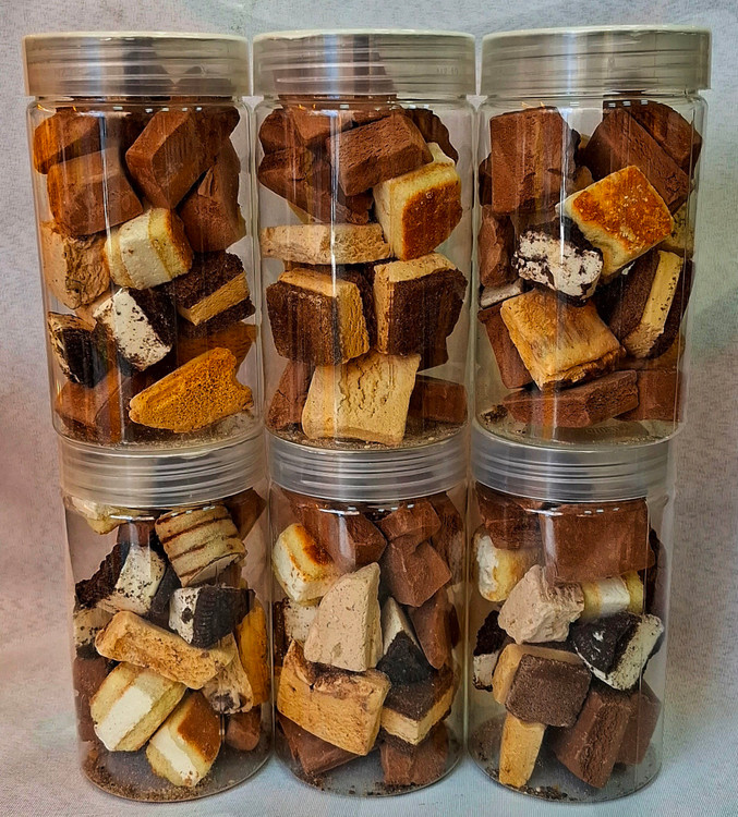 بستنی خشک مخلوط شکلاتی برای کسایی که عاشق شکلات هستن بستنی خشک همون بستنی معمولیه که خشک شده و شما میتونی همه جا با خودت ببری یه بار بخوری عاشقش میشی :)