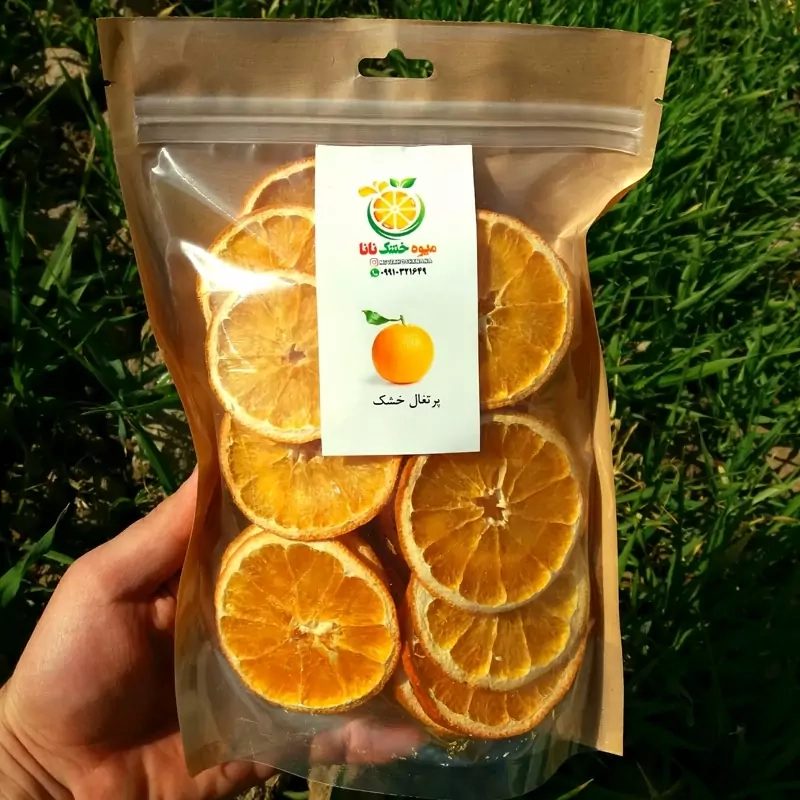 پرتغال خشک تهیه شده از بهترین پرتغال های استان گلستان میوه خشک ،از خشک کردن انواع میوه ها به روش سنتی و طبیعی و یا مصنوعی بدست میاد میوه خشک تقریبا تمامی خواص و مواد مغذی میوه طبیعی و تازه را دارد و می تواند به عنوان میان وعده مصرف شود. میوه خشک به علت حجم کم و ماندگاری بالا بازار مصرف خوبی را در میان عموم دارد، علاوه بر آن به خاطر همین ویژگی ها انواع میوه خشک از ایران به کشورهای خارجی صادر می شود. ***خواص پرتغال خشک*** هر کیلو میوه خشک شده پرتقال حاصل به عمل اوری 8 الی 12 کیلو میوه تازه میباشد پرتقال علاوه بر ویتامین ث (c)دارای انواع ویتامینهای A B E ,و همچنین سرشار از بتاکاروتن میباشد ضمنا در این میوه املاح معدنی از جمله کلسیم فسفر آهن منیزیم پتاسیم و مقداری مس آهن منگنز و روی هم وجود دارد. پرتقال مقوی معده و ضد گاز است پرتقال ضد سم مدر و نرم کننده سینه و ضد استفراغ است. . مقدار 28 گرم پرتقال حاوی 11 کیلوکالری انرژی دارد و در میوه خشک ان هر 3 گرم معادل این مقدار کالری است پرتقال خشک وجیسنک به علت دارابودن پروتئین و کلسیم قابل جذب و نیز قند کافی یک ماده مغذی و مقوی به حساب می اید می توان به منظور تقویت عمومی بدن از آن استفاده کرد. . وجود هورمون ها رشد کلسیم فسفر آهن ویتامین A ویتامین C در پرتقال شرایط لازم را برای رشد استخوان ها و عاج سازی به منظور استحکام دندان ها فراهم مینماید. برای تقویت و رشد اطفال و نیز تامین موادلازم بدن مصرف آن به زنان باردار و شیرده بسیارتوصیه می شود. مصرف پرتقال خشک به دلیل این که حاوی موادمعدنی کافی به ویژه پتاسیم است که منجر به افزایش حجم ادرار در طول شبانه روز می شود و از این طریق سموم بدن دفع خواهد شد در نتیجه باعث ایجاد نشاط درانسان میشود لازم به ذکر است آن عده از بیماران که مشکل آسم رماتیسم وپوستی که روزانه مقداری ترکیبات کورتون مصرف می کنند برای جلوگیری از عوارض دیگر پیوسته باید مقداری پتاسیم مصرف کنند که البته طبیعی ترین راه ان استفاده از پرتقالاست. خوردن پرتقال ضد اسپاسم و آرام بخش و خون را تمیز می کند . پرتقال گرچه اسیدی است ولی خاصی قلیایی به بدن خواهد داد و برای کسانیکه گوشت بیش از حد مصرف می کنند و بدنشان اسیدی است مفید خواهد بود و همچنیمن مقوی معده است. ضمنا جبران کننده کمبود ویتامین ارزشمندی همچون ویتامین ث در بدن است.نرم کننده سینه در فواصل غذاهای روزانه میل شود.پرتقال خون را تصفیه و تشنگی را فرو مینشاند. پرتقال برای ناراحتی صفرایی مفید وبا اضافه عسل یک نوشیدنی خوبی است برای کسانی که درد مفاصل دارند. برای کسانی که در اثر مصرف زیاد گوشت و پروتئین خون خود را مسموم کردند هیچ چیزی بهتر از پرتقال و مرکبات نخواهد بود. برای درمان بیماریهای عفونی چون سفلیس، سوزاک، ابله، سرخک، مخملک، تیفوس، تب زرد و جوشهای صورت بسیار مفیید واقع میشود